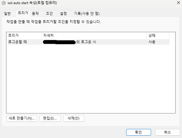 ⚠️ 이 방식은 Windows에 로그온 된 상태에서만 WSL이 유지된다.